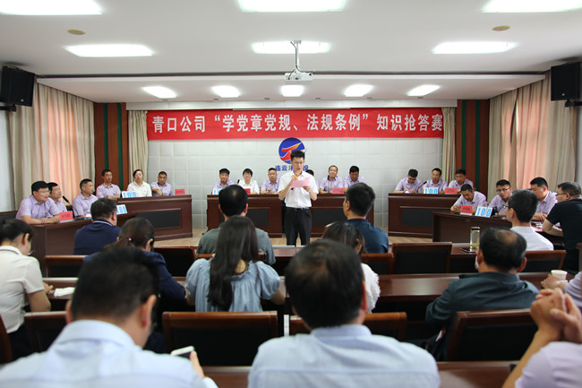 為推動(dòng)黨員干部進(jìn)一步掌握基本標(biāo)準(zhǔn),增強(qiáng)黨的意識(shí)、黨員意識(shí)、紀(jì)律意識(shí),更好地堅(jiān)守初心、踐行使命,6月23日上午,青口公司舉辦“學(xué)黨章黨規(guī)、法規(guī)條例”知識(shí)搶答賽活動(dòng)。來自公司8個(gè)支部的24名選手參加了比賽。公司黨委班子成員出席了活動(dòng)。機(jī)關(guān)全體管理人員、各單位黨政工負(fù)責(zé)人到場(chǎng)觀看。