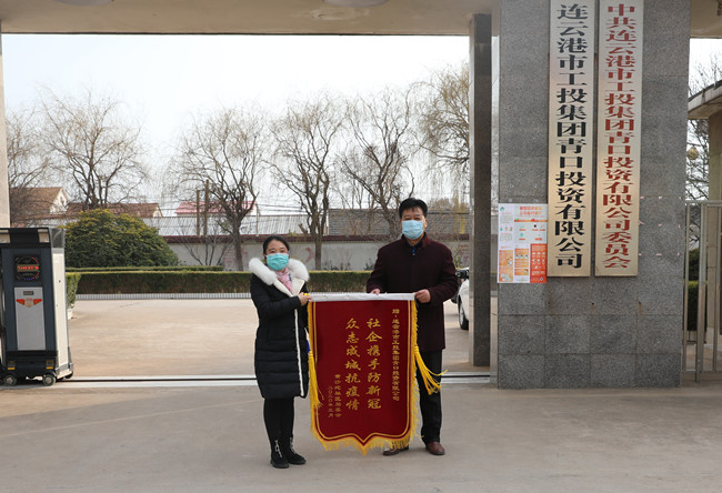3月6日下午,開發(fā)區(qū)猴嘴街道辦事處副主任孫寶川、黃沙坨社區(qū)黨支部書記、居委會主任程嵐一行,分別給我公司贈送錦旗,向公司連日來積極組織黨員干部、志愿者聯(lián)合社區(qū)開展疫情聯(lián)防聯(lián)控等工作表示誠摯的感謝。