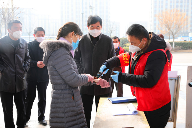 汪書(shū)記一行在公司疫情防控檢查站前,詳細(xì)了解了公司疫情防控情況,青農(nóng)一路作為主要的進(jìn)場(chǎng)通道,四個(gè)單位的黨員干部輪流值班,并設(shè)置臨時(shí)看護(hù)房,保證二十四小時(shí)值班。在鹽場(chǎng)家園小區(qū)僅保留一個(gè)出口,外來(lái)家用轎車(chē)一律禁止入內(nèi),每戶發(fā)一張通行證,嚴(yán)格管控人員流動(dòng)。汪書(shū)記得知物業(yè)公司還沒(méi)有完成,鼓勵(lì)大家非常時(shí)期用非常辦法,將工作做細(xì)做實(shí),想居民所想,嚴(yán)格做好防控工作。進(jìn)入小區(qū)前,汪書(shū)記也與居民一樣配合登記和測(cè)量體溫,當(dāng)看物業(yè)為了保證每天定時(shí)對(duì)單元和電梯間等重要場(chǎng)所的消毒存有大量消毒液,強(qiáng)調(diào)物業(yè)公司要增強(qiáng)消毒物品存放安全意識(shí),合理使用,盡最大努力保一方平安。