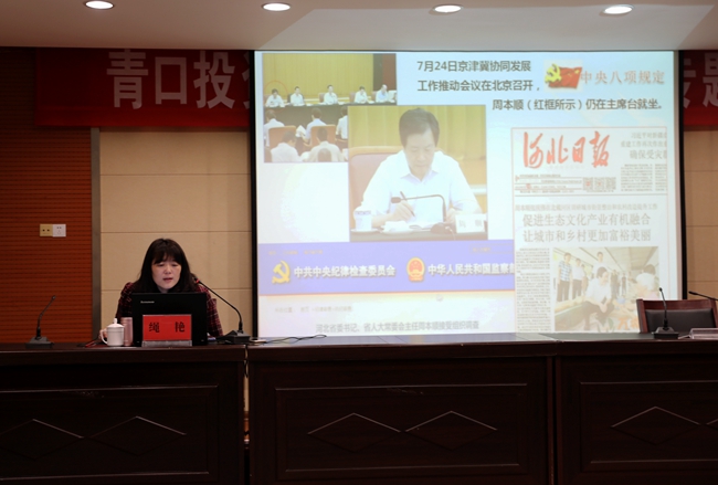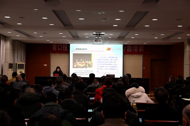 為進一步強化作風(fēng)建設(shè),增強黨員干部廉潔從業(yè)意識, 1 月 11 日上午,青口公司邀請市紀委 黨風(fēng)政風(fēng)監(jiān)督室主任繩艷 作了題為《落實八項規(guī)定精神 從嚴從實改進作風(fēng)》的專題報告,集團紀委書記汪群、公司領(lǐng)導(dǎo)班子成員和全體在崗黨員參加此次講座,講座由黨委書記、董事長胡傳法主持。