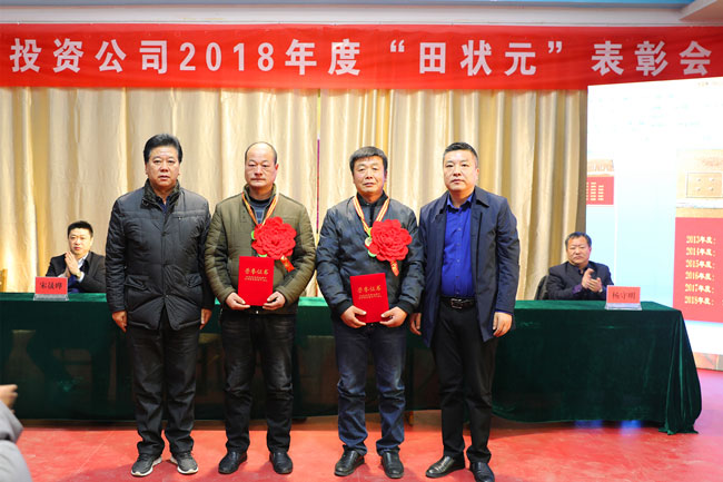 11月29日,在職工活動(dòng)室隆重舉行2018年度“田狀元”表彰大會(huì)。投資公司黨委書記、董事長(zhǎng)胡傳法及班子全體成員參會(huì)?;鶎痈笨萍?jí)以上、機(jī)關(guān)全體管理人員及部分條田工參加。會(huì)議由投資公司黨委副書記、工會(huì)主席史祥平主持。
