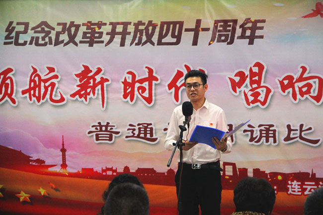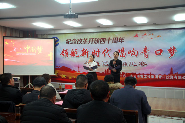 為了紀(jì)念改革開放四十周年,引導(dǎo)和激勵廣大職工圍繞 “高質(zhì)發(fā)展、后發(fā)先至”主題主線,為建設(shè)“強(qiáng)富美高”新青口、開啟青口發(fā)展新征程貢獻(xiàn)力量。12月11日下午,青口公司黨委隆重舉行“領(lǐng)航新時代 唱響青口夢”紀(jì)念改革開放40周年普通話朗誦比賽。活動邀請到連云港市語委辦副主任、詩朗誦藝術(shù)家協(xié)會副主席朱衛(wèi)文,國家級普通話測試員、市朗誦藝術(shù)家協(xié)會副秘書長李蕾、主任播音員、市朗誦藝術(shù)家協(xié)會副主席朱平擔(dān)任評委。公司領(lǐng)導(dǎo)班子 及 全體管理人員參加活動