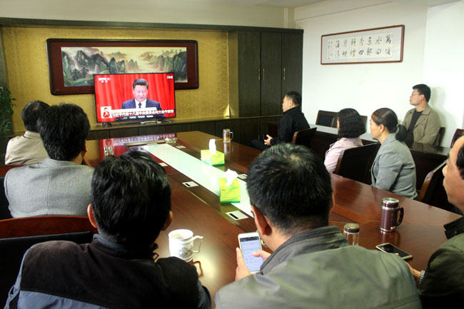 大家早早就集中到各收看點(diǎn),做好收看準(zhǔn)備。報(bào)告伊始,大家聚精會(huì)神,仔細(xì)聆聽報(bào)告內(nèi)容,并不時(shí)做著記錄。大家一致認(rèn)為黨的十九大是在全面建成小康社會(huì)決勝階段、中國特色社會(huì)主義進(jìn)入新時(shí)代的關(guān)鍵時(shí)期召開的一次十分重要的大會(huì),會(huì)議的召開是全黨、全國各族人民政治生活中的一件大事。習(xí)近平總書記所作的報(bào)告全面總結(jié)了黨的十八大以來治國理政的輝煌成就和寶貴經(jīng)驗(yàn),展望了新時(shí)代中國共產(chǎn)黨的歷史使命、新時(shí)代中國特色社會(huì)主義思想和基本方略。習(xí)近平總書記的報(bào)告高瞻遠(yuǎn)矚,氣勢恢宏,總攬全局,振奮人心。