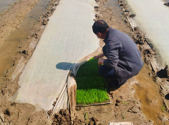 近期,大新農(nóng)場組織對自營農(nóng)田機插秧集中檢查,目前秧苗生長正常已達到1.5-2葉秧齡。由于天氣良好溫度持續(xù)上升,預計5月下旬即可揭開無紡布進行秧苗管理,6月上旬開始插秧。(劉 楊)