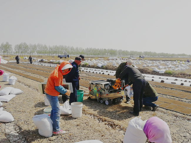 在科學(xué)浸種催芽、秧板田板面整平整細(xì)、適期精量播種的良好基礎(chǔ)上,今年繼續(xù)沿用地頭播地龍和大棚暗化相結(jié)合方式育秧,二分場(chǎng)7隊(duì)率先啟動(dòng)了地頭播地龍育秧,暗化育秧已于4月24日開始浸種,計(jì)劃于28日播盤。(陳?。?/span>