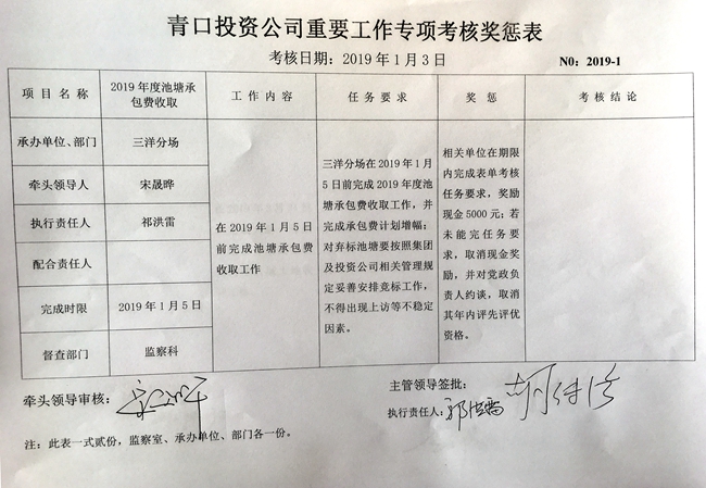 【表單考核】青口投資公司重要工作專項(xiàng)考核獎(jiǎng)懲表