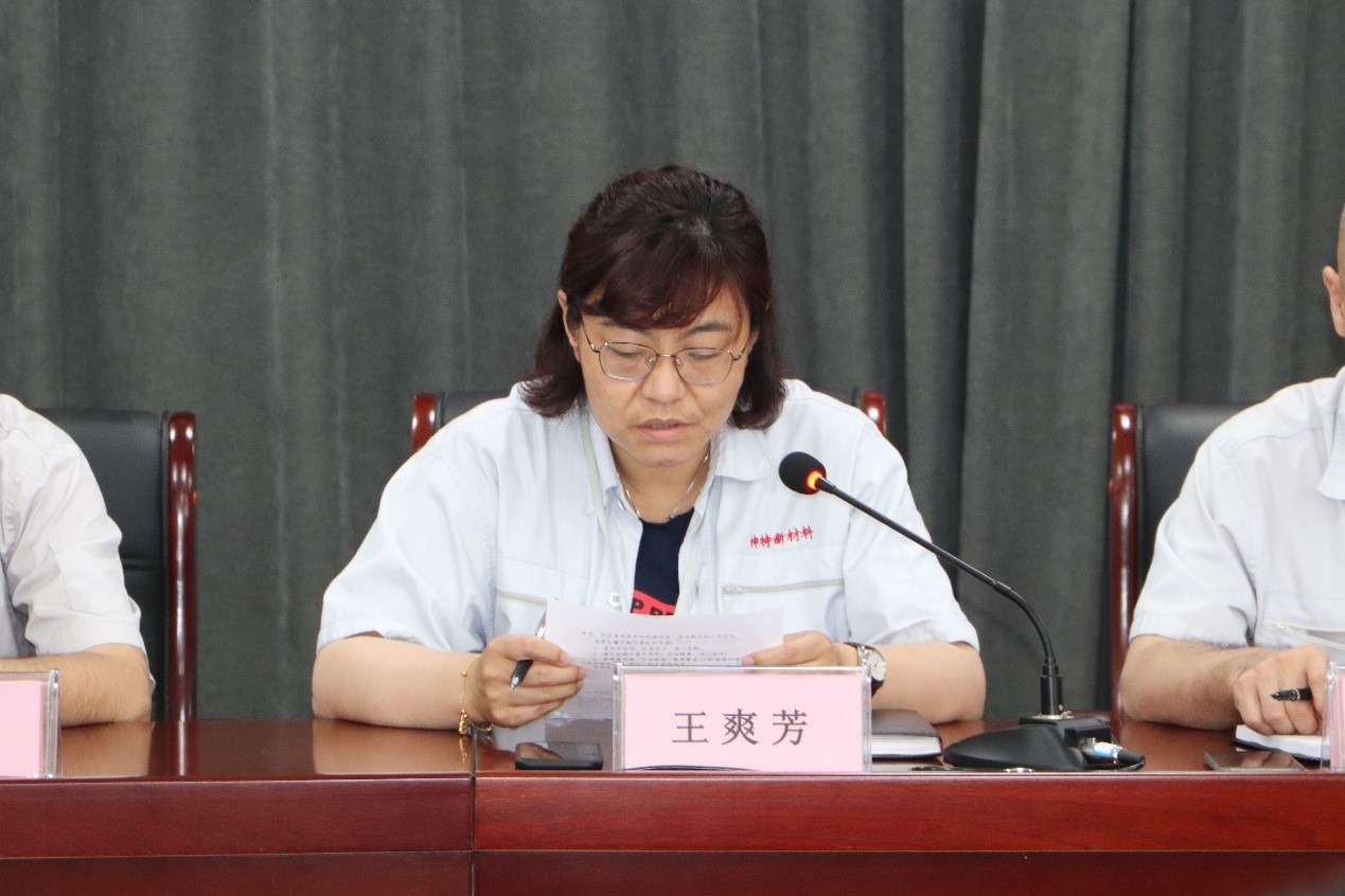 公司副總經(jīng)理王爽芳宣讀“拜師學(xué)藝,崗位成才”活動師徒責(zé)任書內(nèi)容。