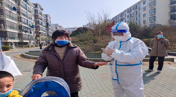 抗疫是場接力賽,眾志成城才能取得勝利。3月18日,參加集團抗疫志愿服務的伏達、徐宏亮接過范益楊、李夢達的“接力棒”,一往如前,奮斗在抗疫一線。清晨,冒著些微冰雹加小雨,通過交通管制重重關卡,兩人準時到達結(jié)對小區(qū)開展志愿服務,一會兒在卡口執(zhí)勤,一會兒維護核酸檢測秩序,一會兒巡邏檢查路邊商戶是否暫停營業(yè)……愣是在寒風中,忙出一身汗。