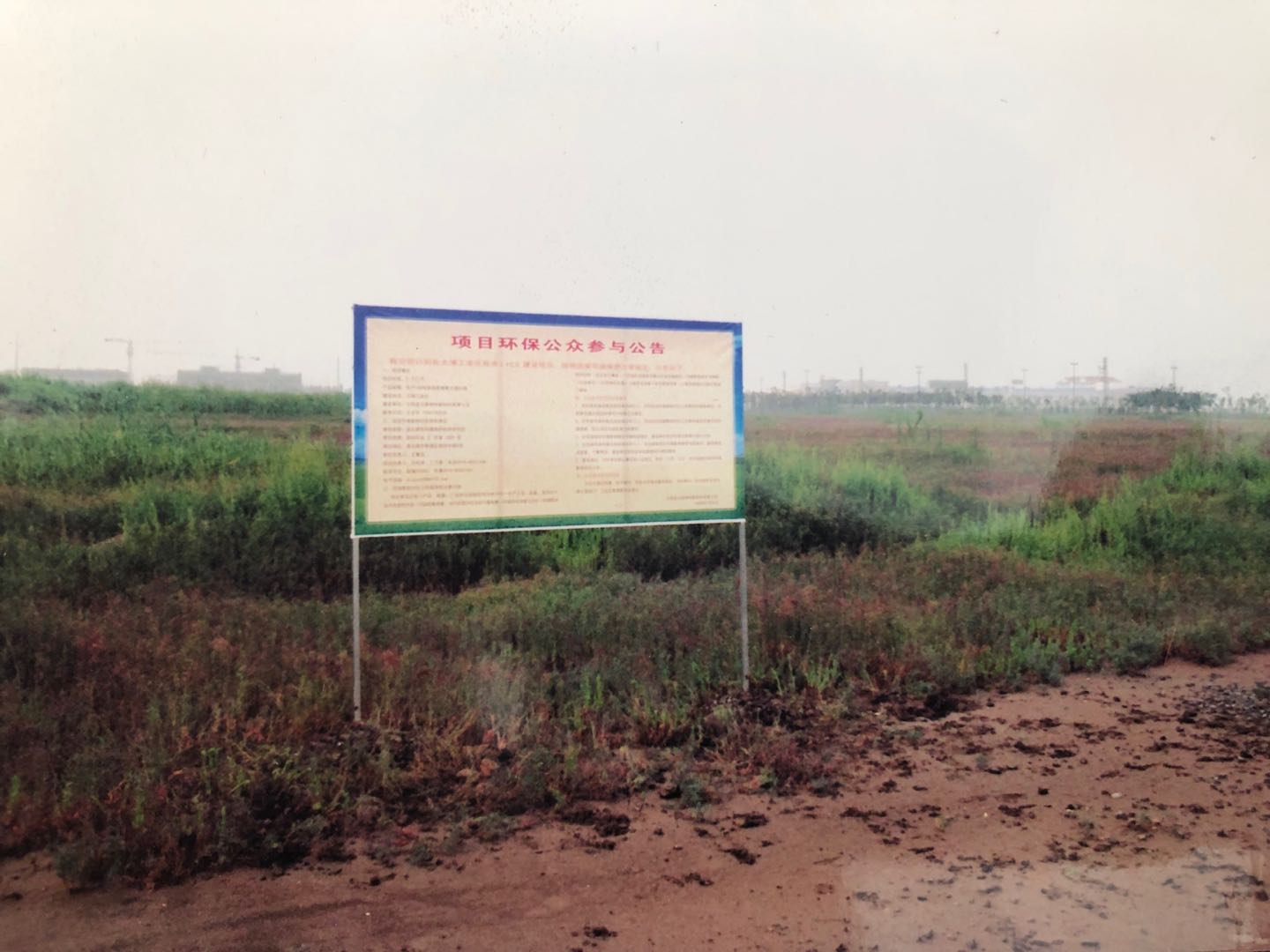 這是神特公司籌建時期的環(huán)評現(xiàn)場公示照片,是2008年8月底拍攝的。照片的重點部分是一個大牌子——項目環(huán)保公眾參與公告的牌子,位置大約在現(xiàn)在一期傳達(dá)室附近。做這樣的牌子是當(dāng)時環(huán)評的一個環(huán)節(jié),必須在建設(shè)場地進(jìn)行兩次公告,征求相關(guān)環(huán)境利益方的訴求。牌子的遠(yuǎn)方隱隱約約看見有些工廠和電力桿塔,牌子附近生長著茂密的堿蒿,一團(tuán)團(tuán)一簇簇,忽高忽低,可以看出地面是很不平整的。當(dāng)年豎牌子的時候,是雨后不久,地面較為泥濘,建設(shè)用地及周邊環(huán)境多多少少透射出一種蒼涼的感覺。