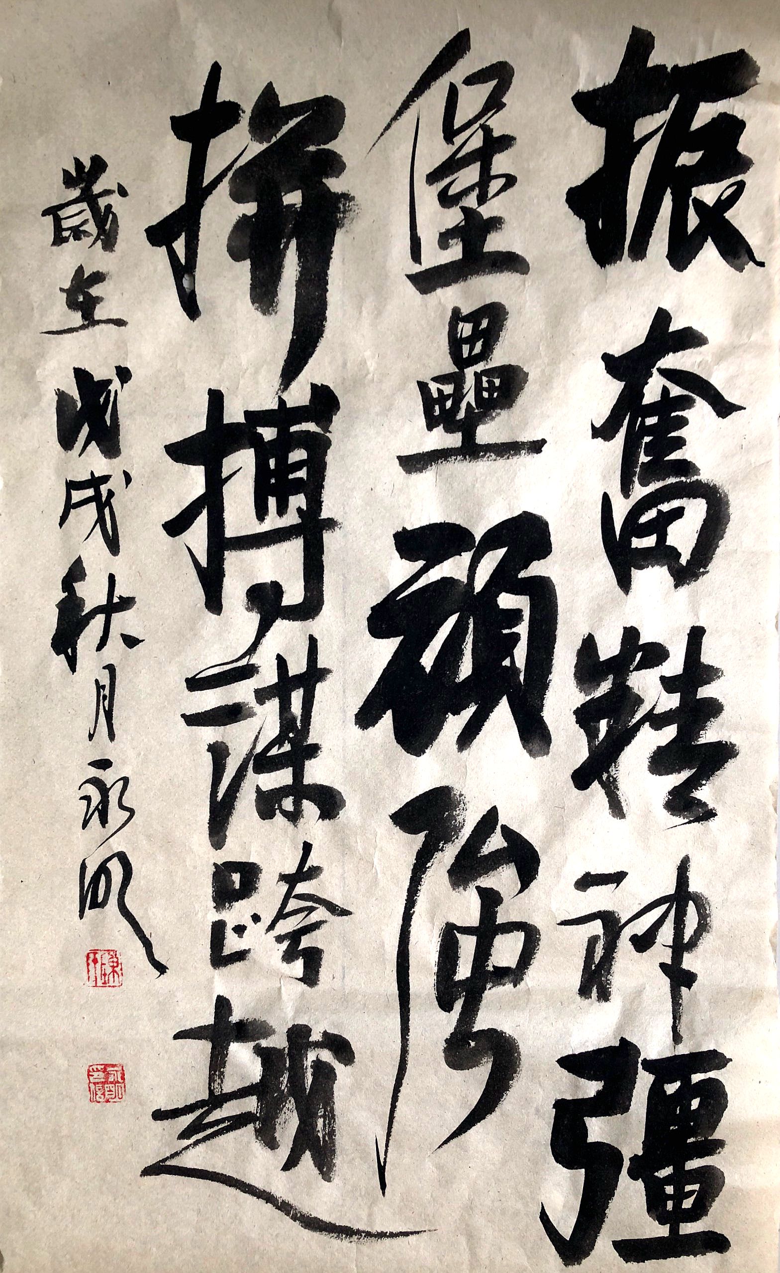 職工陳永明書法作品《振奮精神強(qiáng)堡壘,頑強(qiáng)拼搏謀跨越》