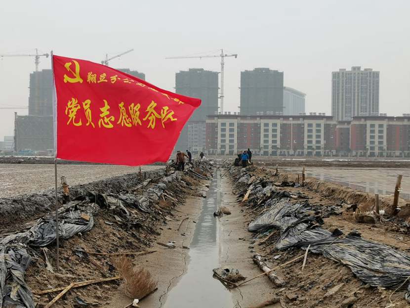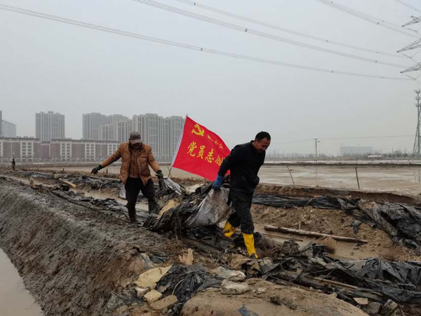 勞動(dòng)現(xiàn)場,鮮紅的“黨員突擊隊(duì)”旗幟迎風(fēng)飄揚(yáng),凜冽的寒風(fēng)夾雜著細(xì)雨,絲毫不減大家的勞動(dòng)熱情,個(gè)個(gè)汗流浹背、滿身泥漿,不怕臟不怕累,經(jīng)過3個(gè)小時(shí)的突擊勞動(dòng),共清理1200米、16車池埝垃圾。