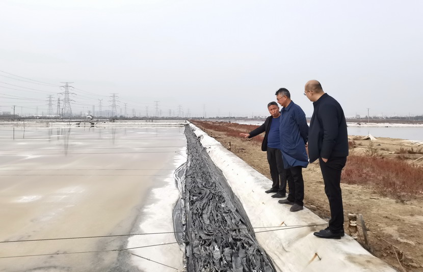 17日上午,公司領(lǐng)導王德志、卞霄帶領(lǐng)礦鹵制鹽升級工程指揮部一行調(diào)研灘地改造項目。