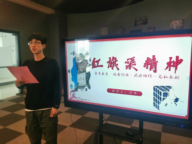 一場(chǎng)演講比賽——“自力更生、艱苦創(chuàng)業(yè)、團(tuán)結(jié)協(xié)作、無私奉獻(xiàn)”,青年職工走上講臺(tái),述說著勤勞勇敢的30萬林州人民,苦戰(zhàn)10個(gè)春秋,僅僅靠著一錘,一鏟,兩只手,在太行山懸崖峭壁上修成了這全長1500公里的紅旗渠的奮斗故事。