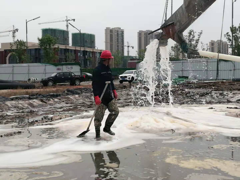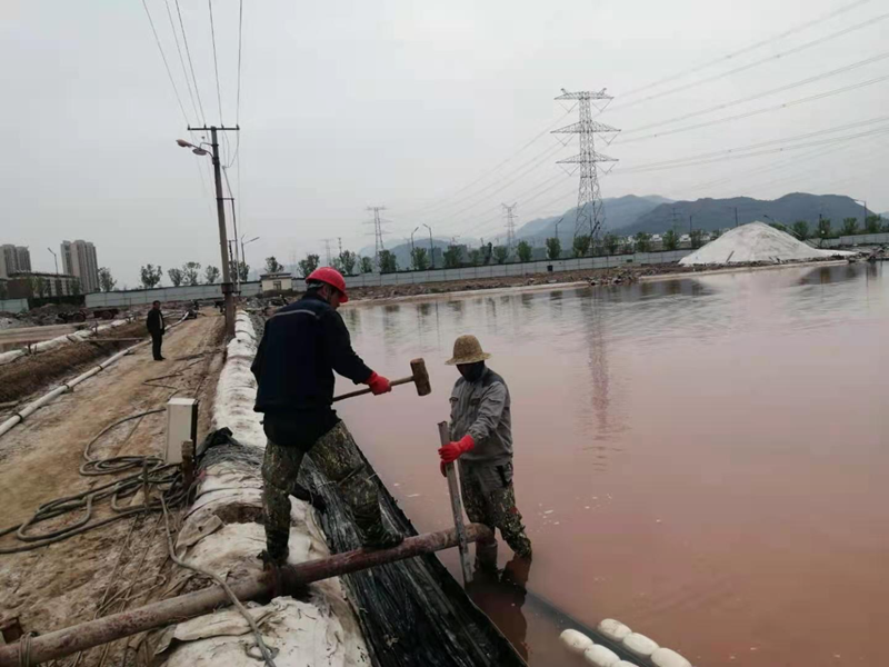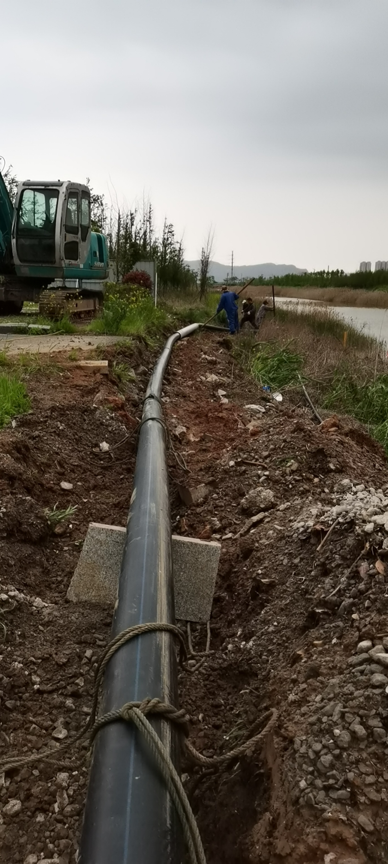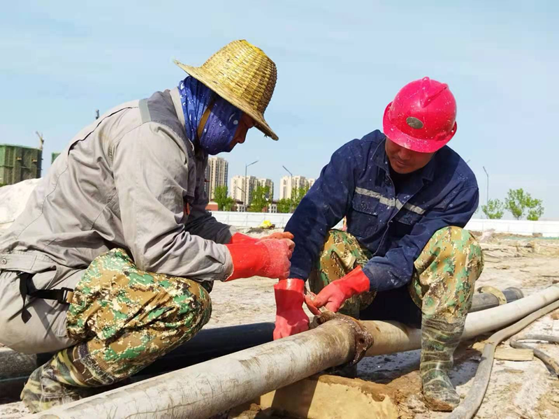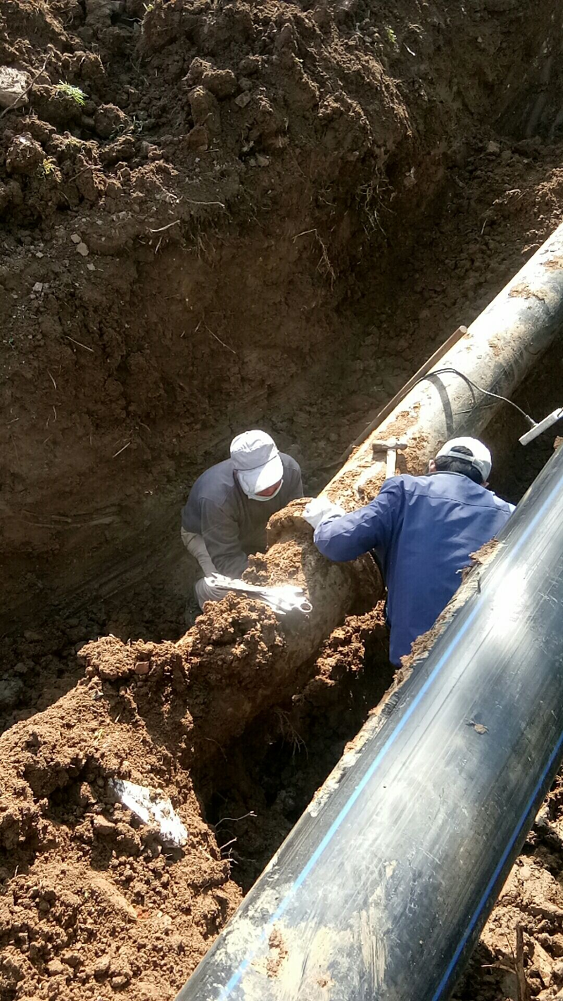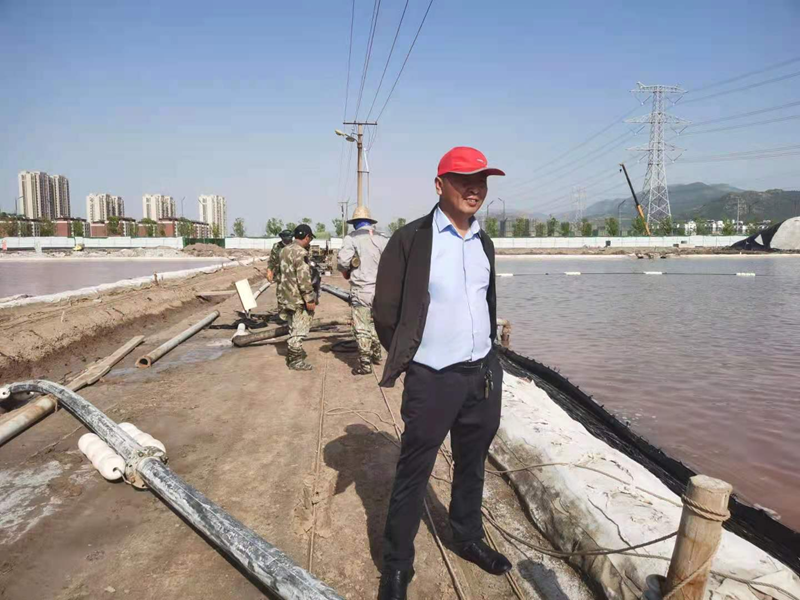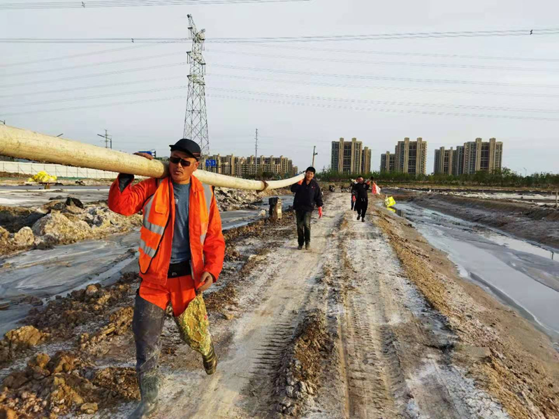 鏡頭四:新光路鹽河邊被開發(fā)區(qū)污水管道施工損壞的灌西鈣液管道,搶修工作正在緊鑼密鼓的進行中。爭取早一天完成就能早一天開機打鹵,將損失減少到最小。