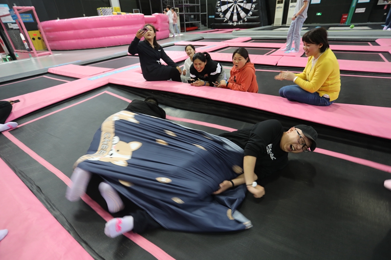 團建活動中,兩個隊伍的成員通過頭腦風(fēng)暴為自己的隊伍分別取名為“黛玉隊”和“寶釵隊”,分別由看起來比較柔軟實際也很柔軟的王茜和看起來很有力量,實際也很有力量的宋文靜帶領(lǐng)。大家喊出來鼓舞人心的口號,簡單的取名、口號環(huán)節(jié)起到了破冰的作用,瞬間拉近了隊員之間的距離。拓展訓(xùn)練中,青年們共同配合,迎難而上,大膽挑戰(zhàn)自我,“重走長征路”、“黨史60秒”、“四平八穩(wěn)”等緊張激烈的對決中,每個團隊齊心協(xié)力攻克了一個個最初認(rèn)為不可能完成的項目,共同分享了成功的喜悅和挑戰(zhàn)的激情,充分地體會到了團隊信任、合作共贏、換位思考、永不言敗的重要意義,圓滿完成了拓展訓(xùn)練任務(wù)。
