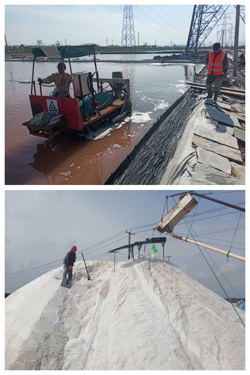 海州灣公司開(kāi)定制的新式扒鹽機(jī)械正式投入使用,秋季生產(chǎn)如火如荼地進(jìn)行中。