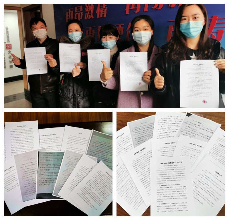 ? ? ??新的目標(biāo)、新的任務(wù)、新的征程,投資公司廣大干部職工通過(guò)遞交“決勝2020,我要這么干”決心書(shū)立決心,傳信心。圍繞當(dāng)前的目標(biāo)任務(wù)自我加壓,主動(dòng)擔(dān)責(zé),切實(shí)做到防疫不松懈,工作不斷線。積極投身于“戰(zhàn)疫情、爭(zhēng)貢獻(xiàn),誓奪首季開(kāi)門紅”勞動(dòng)競(jìng)賽中,以實(shí)際行動(dòng)奪取“開(kāi)門紅”,決勝“全年紅”。