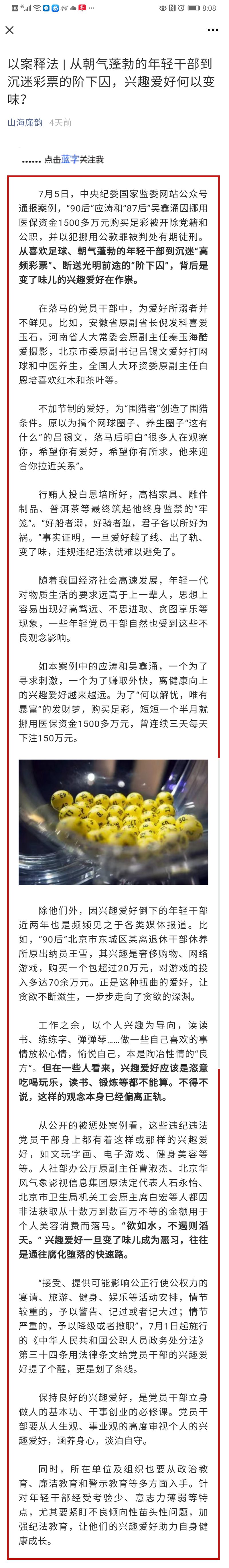 [以案釋紀(jì)]從朝氣蓬勃的年經(jīng)干部到沉迷彩票的階下囚,興趣愛好何以變味?