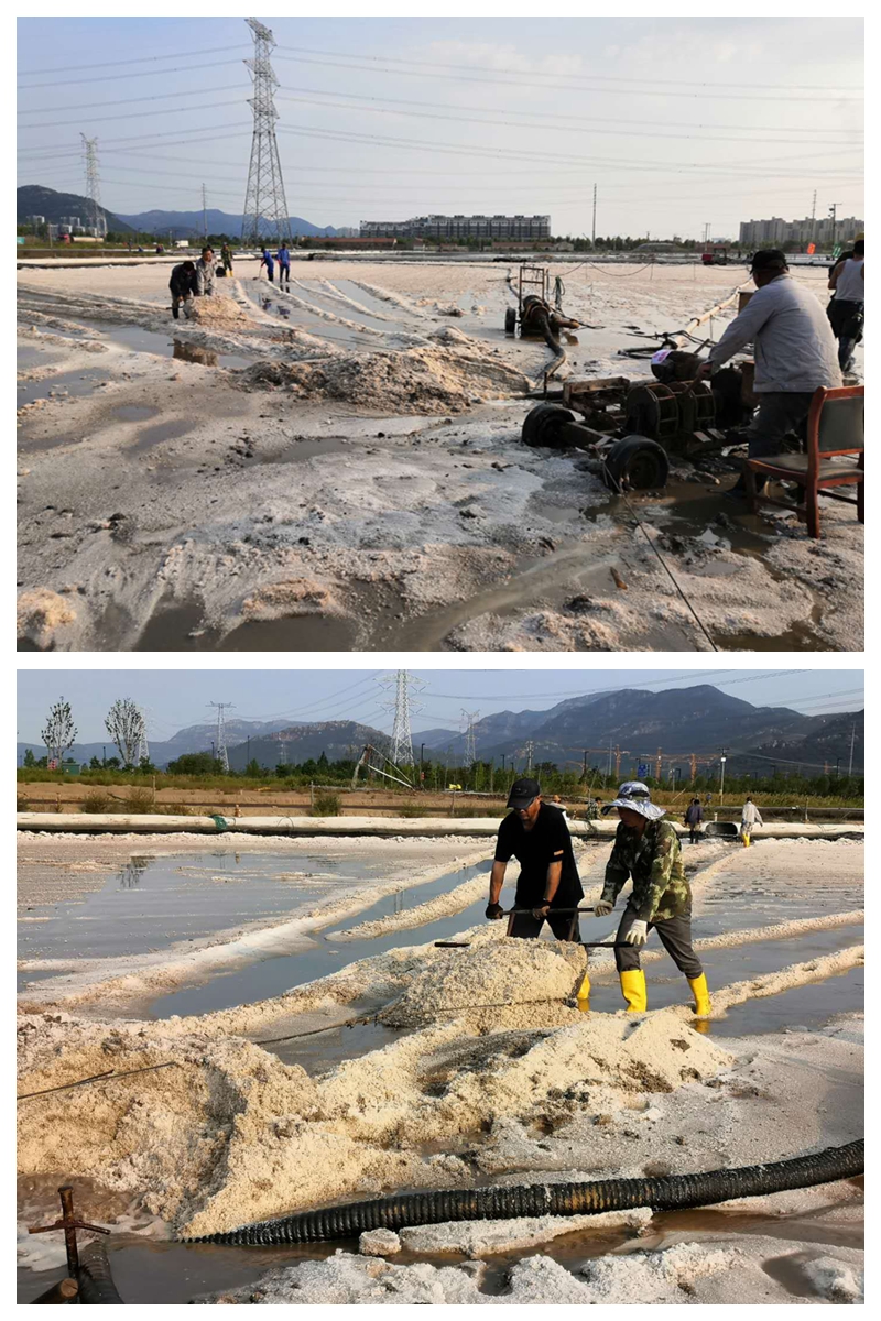 “大架在向后移動4到5公分,鹽鎊、鹵鎊與管頭螺絲擰緊沒有?觸電保安器試跳一下”…….扒鹽現(xiàn)場忙碌而有序,扒鹽人員對開機(jī)前準(zhǔn)備工作再一次檢查確認(rèn)。15:56分鞭炮齊鳴、禮花滿天,“秋扒”正式開啟。本次扒鹽采用人工與機(jī)械相結(jié)合的工作方法,根據(jù)鹽層的厚薄程度決定扒鹽的方式。此次扒鹽生產(chǎn)周期長、工作量大,工區(qū)認(rèn)真組織、精心安排,制定了詳細(xì)、”人性化”的管理人員跟班督查值班表(男同志夜班女同志白班)。要求跟班人員,務(wù)必將“安全、質(zhì)量”兩大主題貫穿整個秋扒工作的各環(huán)節(jié),每天深入扒鹽點(diǎn)開展全面綜合性的定點(diǎn)檢查,重點(diǎn)圍繞“工藝執(zhí)行、安全防范、護(hù)具穿戴”等,職工容易產(chǎn)生思想麻痹的細(xì)節(jié)工作,嚴(yán)明紀(jì)律,杜絕違章作業(yè)。搶時間爭速度,確?!扒锇恰备咝в行蛲瓿?。