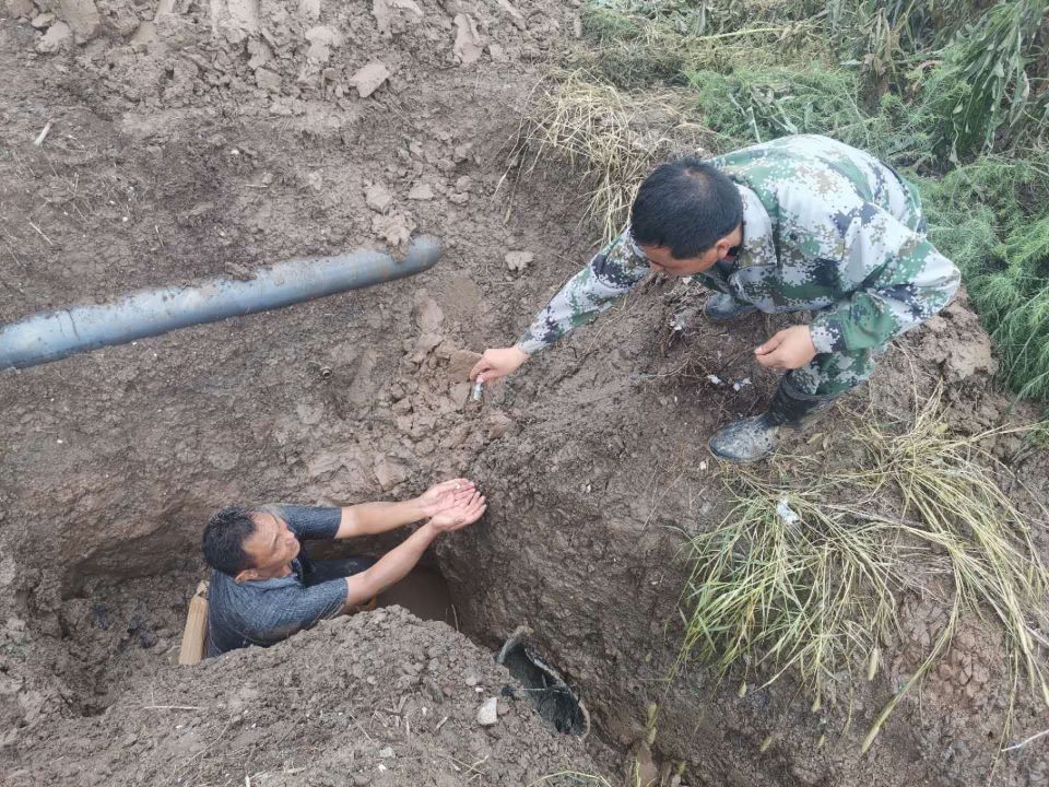 泵站是大浦工區(qū)的命脈,也是生存之源。泵站三人組席強余、喬效富、龔大春憑著敏銳的洞察力,迅速關(guān)掉閥門,帶上工具,立刻出發(fā)排查檢修輸鹵管道。由于昨夜突降暴雨,地面潮濕,給排查工作帶來了相當(dāng)大的困難,三人組按照多年的工作經(jīng)驗,當(dāng)機立斷,分工分路段進行排查,與時間賽跑,早點找到損壞的管道就能減少鹵水的損失。經(jīng)過三人精心細致的排查,徒步六公里,終于在臺北汽車城一處雜草叢生的區(qū)域發(fā)現(xiàn)了損壞的管道,此處管道是掩埋在泥土里面,修復(fù)起來難度更大,三人立即拿起鐵锨開挖,席強余顧不上管道溝里齊膝渾濁的雨水,穿著膠鞋就淌進溝里,坐騎在管道上,雙手伸進水里,嫻熟的進行修復(fù)。經(jīng)過近兩個小時的維修,管道恢復(fù)正常供鹵,大程度減少了鹵水損失,為原鹽順利生產(chǎn)提供了堅強有力的保障。