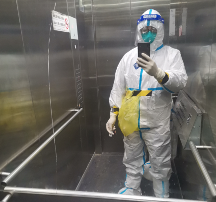 ? ? 14日? 雷聲驟響,大雨突降,集合時間待定,安心的吃了點早飯,依舊不敢吃多。9點開始,第九輪。我出狀況了,剛采一會口罩松了,眼鏡、面屏上全是霧氣,什么也看不見,沒法操作。為了不影響進度我被換下,原定入戶采集的志愿者頂上。防護服脫了就浪費了,我就等入戶醫(yī)生到達,去上門采集。掃樓和定點完全不一樣,悶、熱,大白服都濕透了。13.40結束,全身“噴殺”消毒,脫裝備,再噴消。飯后沒安排我工作,做了核酸后在小區(qū)里坐了幾個小時,心里始終不能平靜,害怕,不安占據(jù)了我的內心,即使做了防護措施但是還是有很大風險,我也有家人,所以我害怕,真的害怕!“沒事的”“沒事”最后還是妻子開解了我。