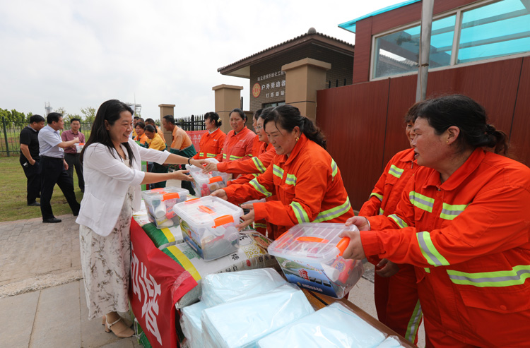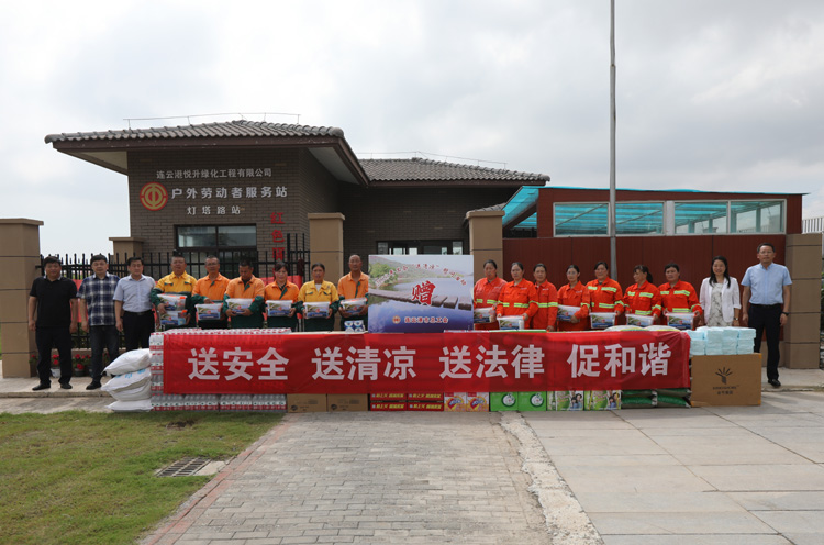 ????? 84日上午,市總工會副主席王悅到連云港綠化工程公司基層班組開展“送安全、送清涼、送法律”活動,走訪慰問堅守在高溫作業(yè)現(xiàn)場的市政養(yǎng)護職工,在送去防暑藥品、涼茶、礦泉水、綠豆、白糖、毛巾等防暑降溫物品的同時,為他們送去絲絲涼意誠摯的關(guān)懷。