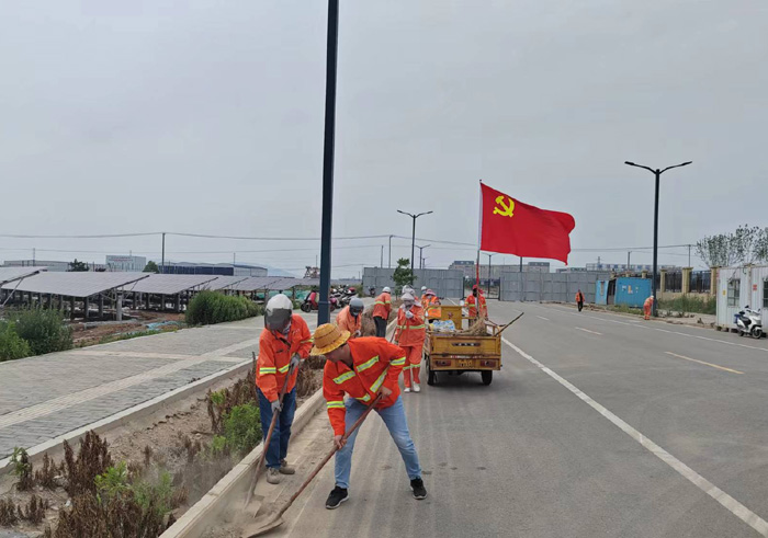 6月21日,該黨支部近30余名黨員在支部的感召下,匯集于新區(qū)節(jié)能一路道路兩邊。勞動現(xiàn)場,黨員生產(chǎn)骨干姚功身先士卒,無懼泥土粉塵揚起,揮汗清理,不怕臟、不怕累,不放過任何衛(wèi)生死角。勞模張學軍與老黨員徐習東相互配合,打包,裝車, 及時轉運各類垃圾達50多袋,清掃路面積土近1500米長,大家分工明確,重活臟活搶著干。隊員們齊心協(xié)力,用實際行動詮釋黨員吃苦在前、勇于擔當?shù)姆瞰I精神。經(jīng)過四個多小時清理,主干道及周邊道路垃圾、雜草、泥土全部清理干凈,高質(zhì)量完成奉獻勞動,鮮艷的黨旗在陽光的照耀下顯得格外閃亮。(楊波)