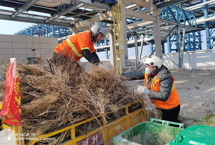 4月9日11點(diǎn),石化一班接到公司應(yīng)急處理任務(wù),中化倉儲(chǔ)車間院內(nèi)有多處雜草、垃圾需及時(shí)處理。班長陳小軍與同事陸軍等同志顧不上用午餐,迅速騎上電動(dòng)三輪車奔赴現(xiàn)場(chǎng)?,F(xiàn)場(chǎng)工作中,大家相互配合,無所顧及枯草、生活垃圾發(fā)出的陣陣難聞怪味。徒手裝車,轉(zhuǎn)運(yùn)傾倒,經(jīng)過近三個(gè)多小時(shí)搶裝轉(zhuǎn)運(yùn),清理雜草20多車,各類垃圾30多袋,高質(zhì)量完成中化倉儲(chǔ)罐區(qū)環(huán)境突擊任務(wù)。往來廠區(qū)車間工作人員看著雜亂不堪的垃圾瞬間消失在人們眼前,無不豎起贊許目光,此次保潔衛(wèi)士深入廠區(qū)開展突擊治理,受到中化主管部門高度評(píng)價(jià)。(楊波)