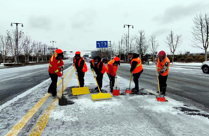 ? ? ? ?連日來,受強(qiáng)冷空氣影響,鵝毛雪花持續(xù)飄落港城大地。為保障行人車輛往來徐圩新城安全通行。保潔分公司全員上下協(xié)力同心、遇雪”奮戰(zhàn),確保責(zé)任區(qū)域道路車輛行人安全出行。