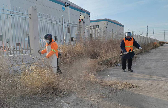 該分公司園區(qū)兩個(gè)班組近35名保潔勇士,無(wú)懼低溫刺骨天氣,匯聚石化十路、石化三道道路兩側(cè)。勞動(dòng)現(xiàn)場(chǎng),黨員骨干示范帶頭作用處處體現(xiàn)。石峰、朱海勇、楊靜身背幾十斤重打草機(jī),無(wú)所怨言,持續(xù)工作時(shí)長(zhǎng)達(dá)三個(gè)多少時(shí)。在他們的帶動(dòng)下,班組人員一字排開,分工明確,各負(fù)其責(zé)。