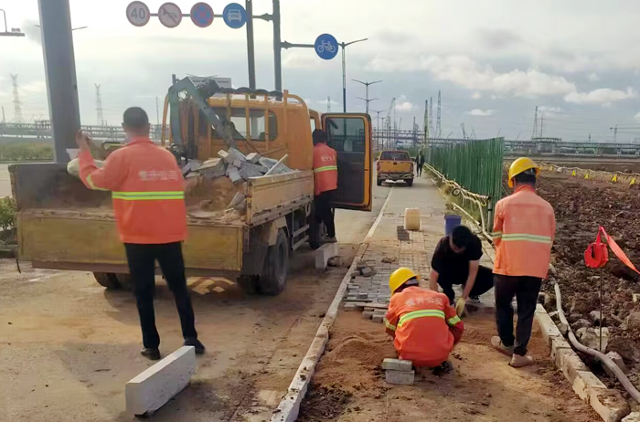 走進(jìn)新區(qū)石化十路一處施工現(xiàn)場,“市政尖兵們”正井然有序地對因施工車輛碾壓造成人行步道地磚破損處進(jìn)行修復(fù)。人工拆除原受損人行道地磚,對缺失路牙石進(jìn)行補(bǔ)缺并壓實(shí)整平基礎(chǔ)、定位放線、更換面包磚和盲道磚,經(jīng)過2個多小時緊張施工,原坑坑洼洼的路面,取而代之是敞亮平整。多日來,默默無聞的市政“尖兵”們用勤勞的雙手加速施工進(jìn)程,用實(shí)干詮釋徐圩悅升市政人的新風(fēng)采。目前,已完成徐圩大道、云河路等10條主次干道兩側(cè)人行道集中巡檢修補(bǔ)工作,共整治32處,更換面包磚約96平方米、路緣石33米、盲道地磚11平方米。