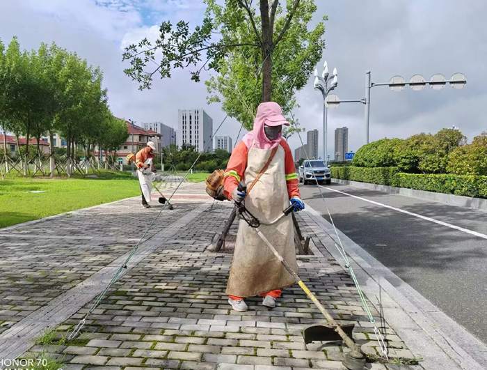 ????? 黑色柏油馬路上,熱浪滾滾,橙色工作服在強(qiáng)烈陽(yáng)光照耀下顯得格外引人注目。女子班組保潔人員在班長(zhǎng)龔飛帶領(lǐng)下,背著30余斤重的割草機(jī),來(lái)回?cái)[動(dòng)手中機(jī)械,忘我工作達(dá)7個(gè)多小時(shí),“收割”云河南路生活區(qū)周邊雜草20多處;人工清掃裝運(yùn)施工車輛拋灑石子、泥土30余車,擦洗站臺(tái)座椅40多個(gè),清掏果皮箱余200余只。