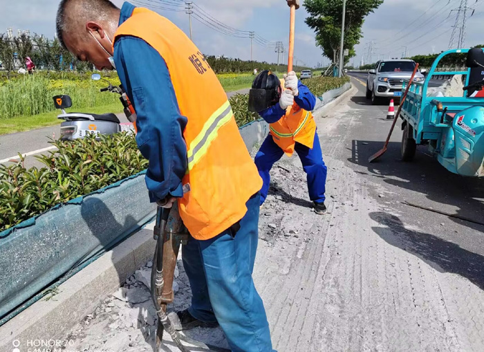 ????? “哪里有急、難、險(xiǎn)、重問(wèn)題,就有黨員的身影”。8月4日7時(shí)許,石化一班班長(zhǎng)巡查中發(fā)現(xiàn),石化園區(qū)主干道臨海公路與石化七道交接處,發(fā)現(xiàn)兩處近200多米長(zhǎng)的混凝土水泥拋灑物,如不及時(shí)處理,易造成路面行車安全交通隱患。薛明柱迅速召集隊(duì)員到達(dá)現(xiàn)場(chǎng),大家無(wú)懼灼熱陽(yáng)光暴曬,三人一組,兩人一對(duì),不停按動(dòng)手中電錘,揮動(dòng)手中鐵錘,反復(fù)撬動(dòng)緊貼地面混凝土,豆粒大的汗珠從臉頰兩旁滾滾流下,盡管有的同志手磨出了血泡,但仍然堅(jiān)守崗位。經(jīng)過(guò)近4個(gè)多小時(shí)的努力奮戰(zhàn),轉(zhuǎn)運(yùn)打包固體水泥塊達(dá)200多袋,整潔柏油路面再次還原本色。(楊波)