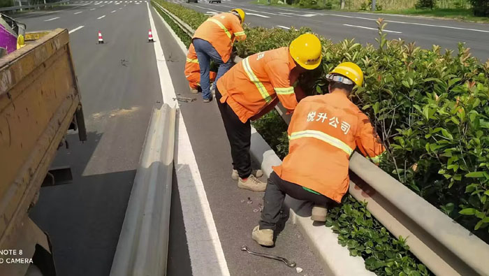 近日,市政分公司道路養(yǎng)護(hù)班組在安全巡查中,發(fā)現(xiàn)徐新路路段多處波形護(hù)欄被撞受損,存在一定的安全隱患。為確保過往車輛安全通行,市政分公司立即組織人員,調(diào)派車輛和材料及時對已損壞的波形護(hù)欄進(jìn)行更換、修復(fù)。